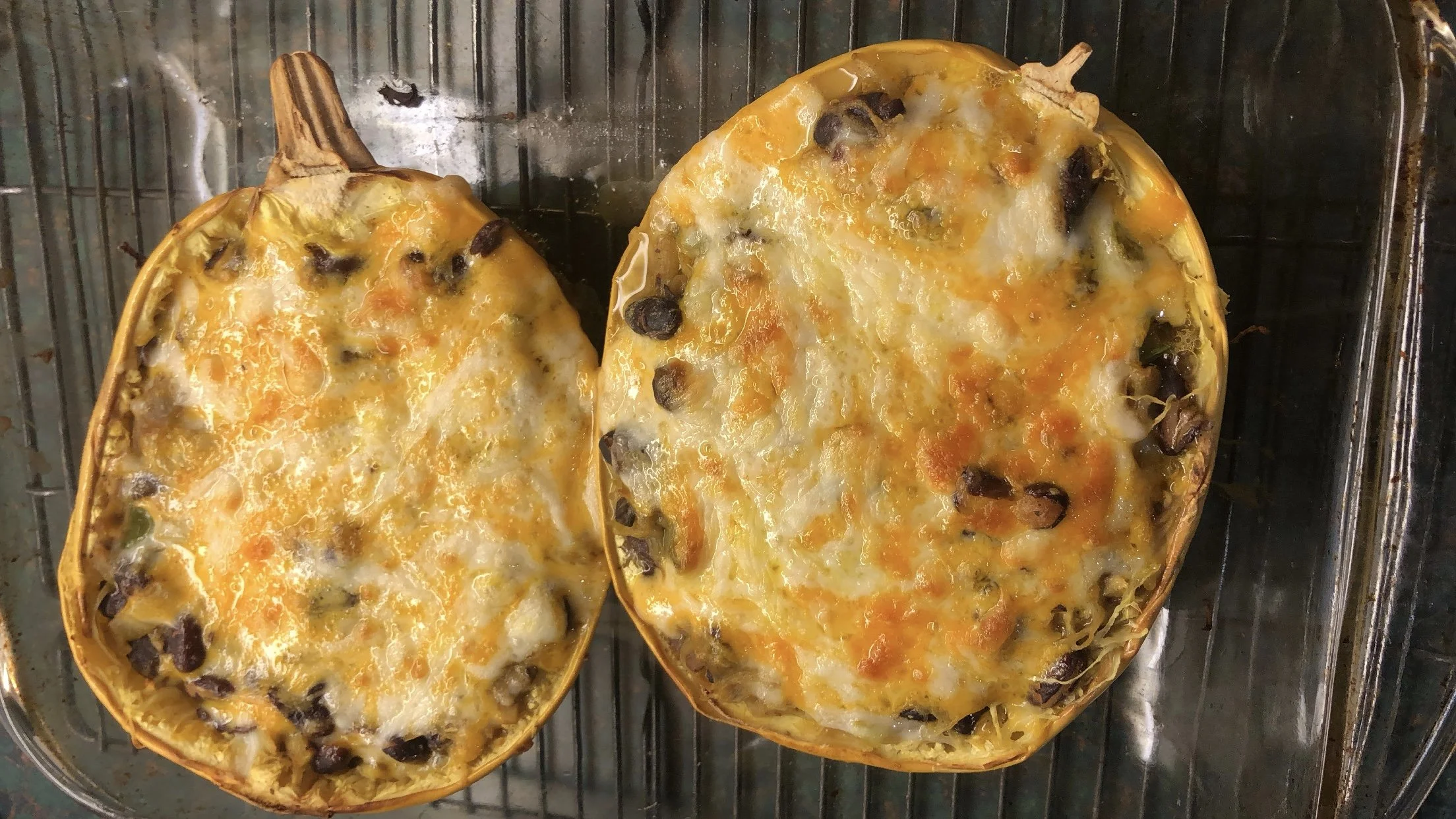 Ohhhhhh Yeahhhhh - Look at that Cheesy Tex-Mex Black and Kidney Bean Stuffed Spaghetti Squash.